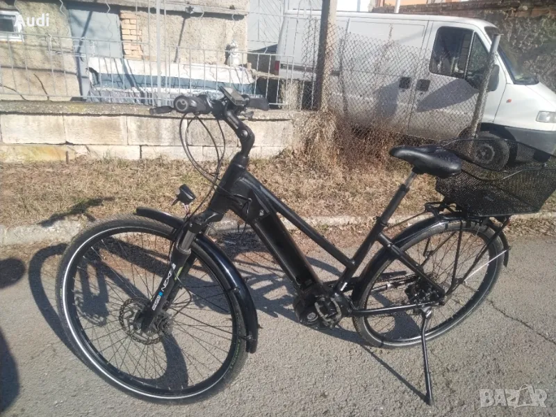Хидравлична дискова спирачка, централен двигател, сменяема батерия, максимална скорост: 25 км/ч; Материал на рамката: Алуминий; Размер на колелата: 28"; Предназначение: Жени;