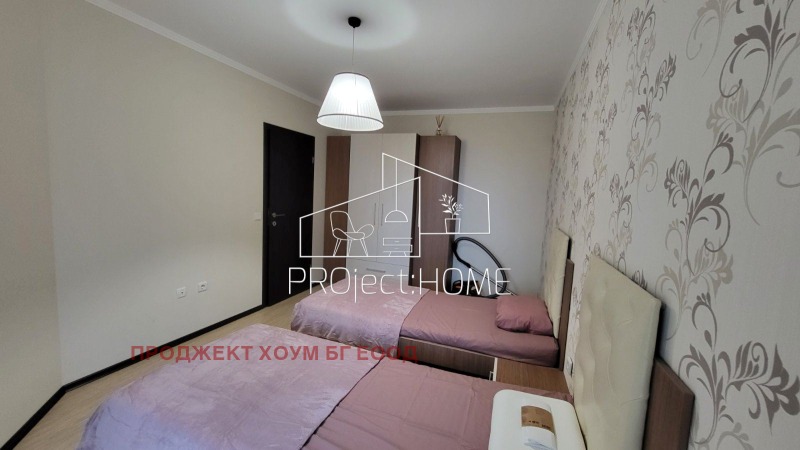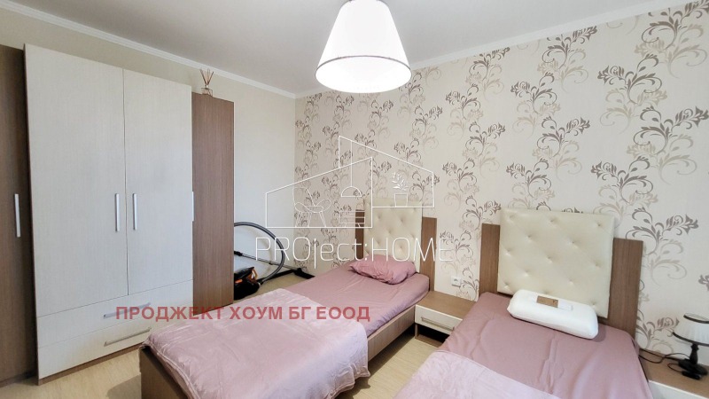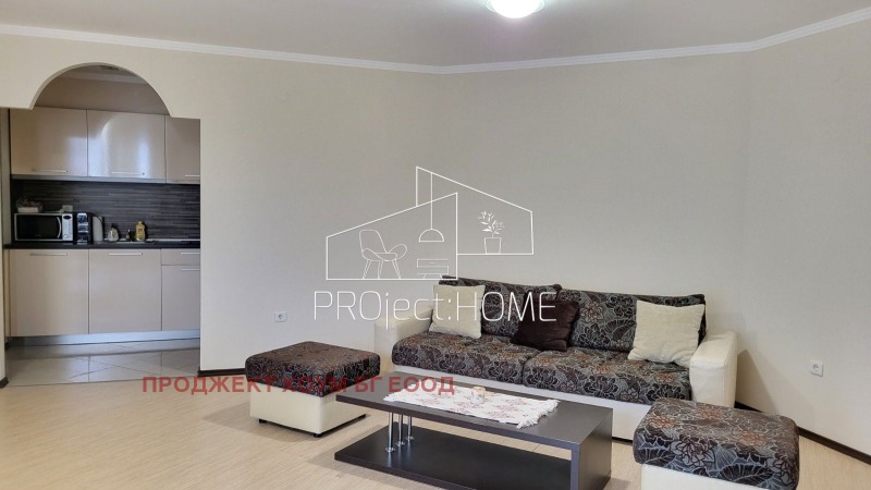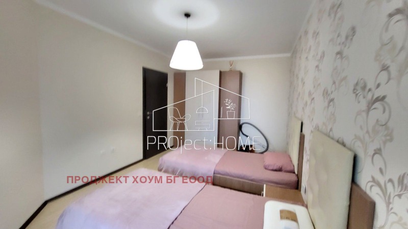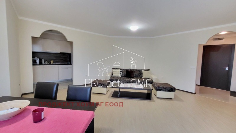 Апартаментът е напълно обзаведен с добра мебелировка. Трапезарията е с пълно кухненско обзавеждане. Апартаментът е много просторен с площ от 107кв.м. и готов за живеене веднага. Апартаментът е разположен на втория етаж, с изцяло източно изложение.