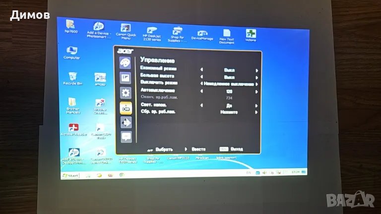 Режими на работа Ярък, Презентация, Стандартен, Видео, Игри, Образование, Кино, Тъмно кино, Спорт. Потребителски