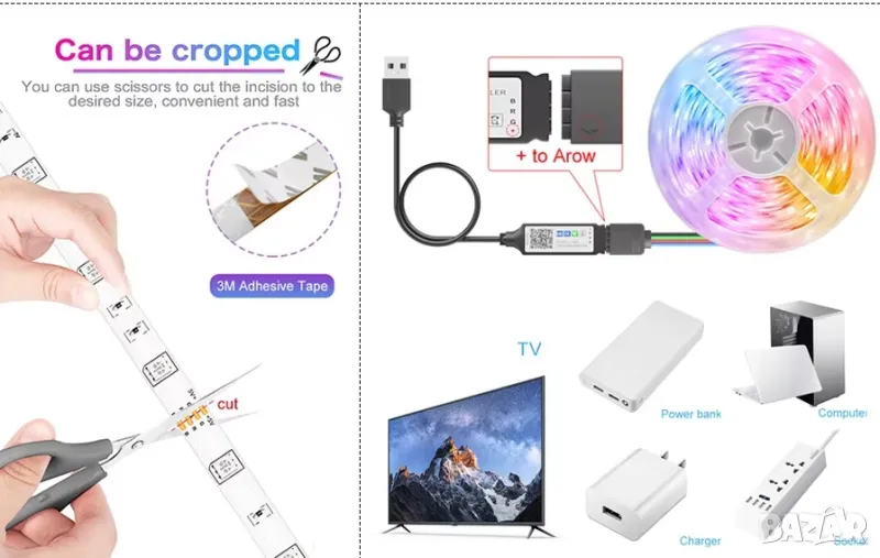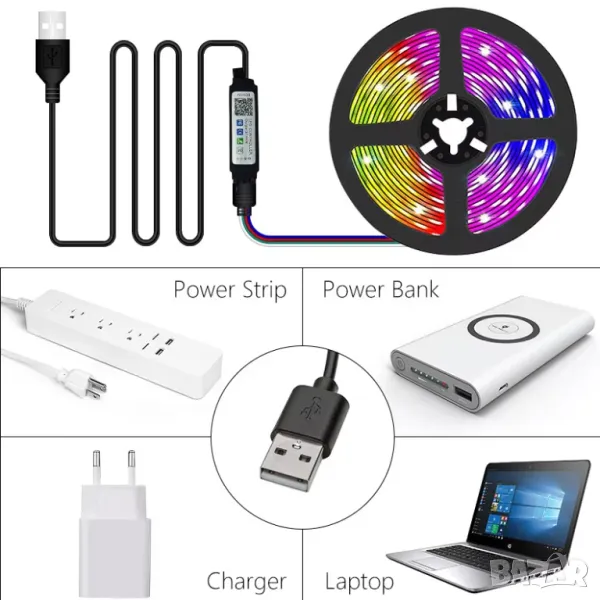 LED лента, светлини 5V с USB за стая, за телевизор, лаптоп, бар, музика декорация, лампа, осветление