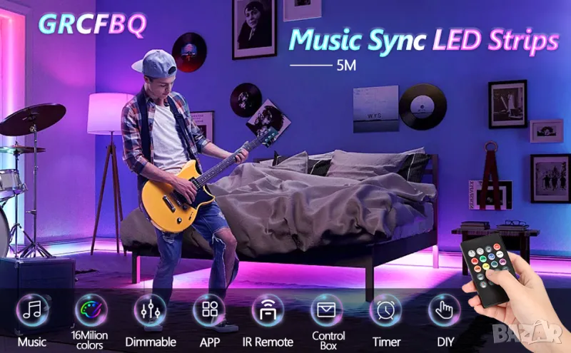 - Можете да управлявате светодиодните лентови светлини на 5 м чрез интелигентно ПРИЛОЖЕНИЕ