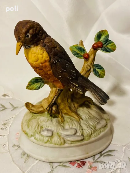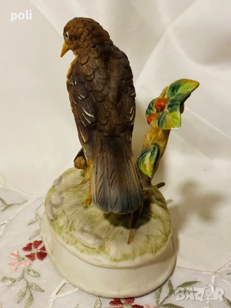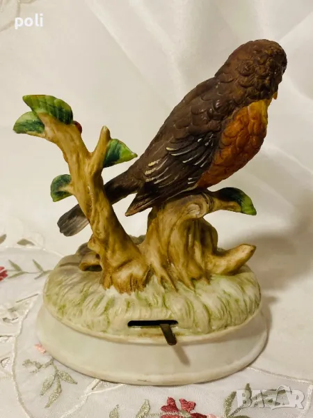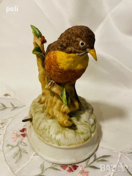 Музикална механична порцеланова статуетка на птичка . Височина 16 см , ширина 12,5 см . Цена 35 лв .