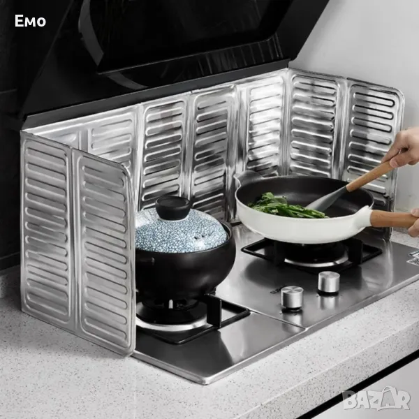Тази преграда е идеалното решение за поддържане на чистота в кухнята, като предпазва стените и плотовете от мазнини и други замърсявания по време на готвене.
