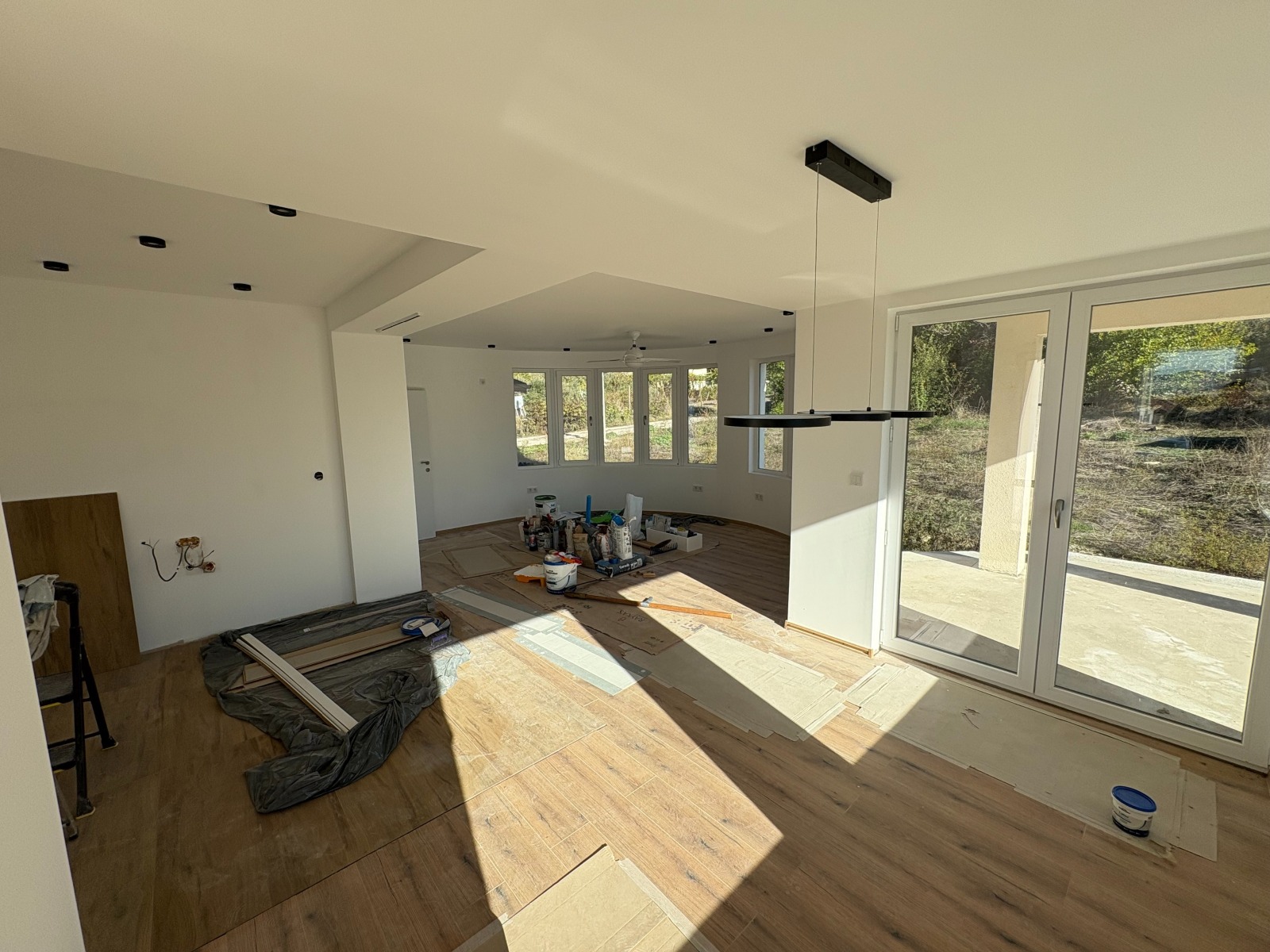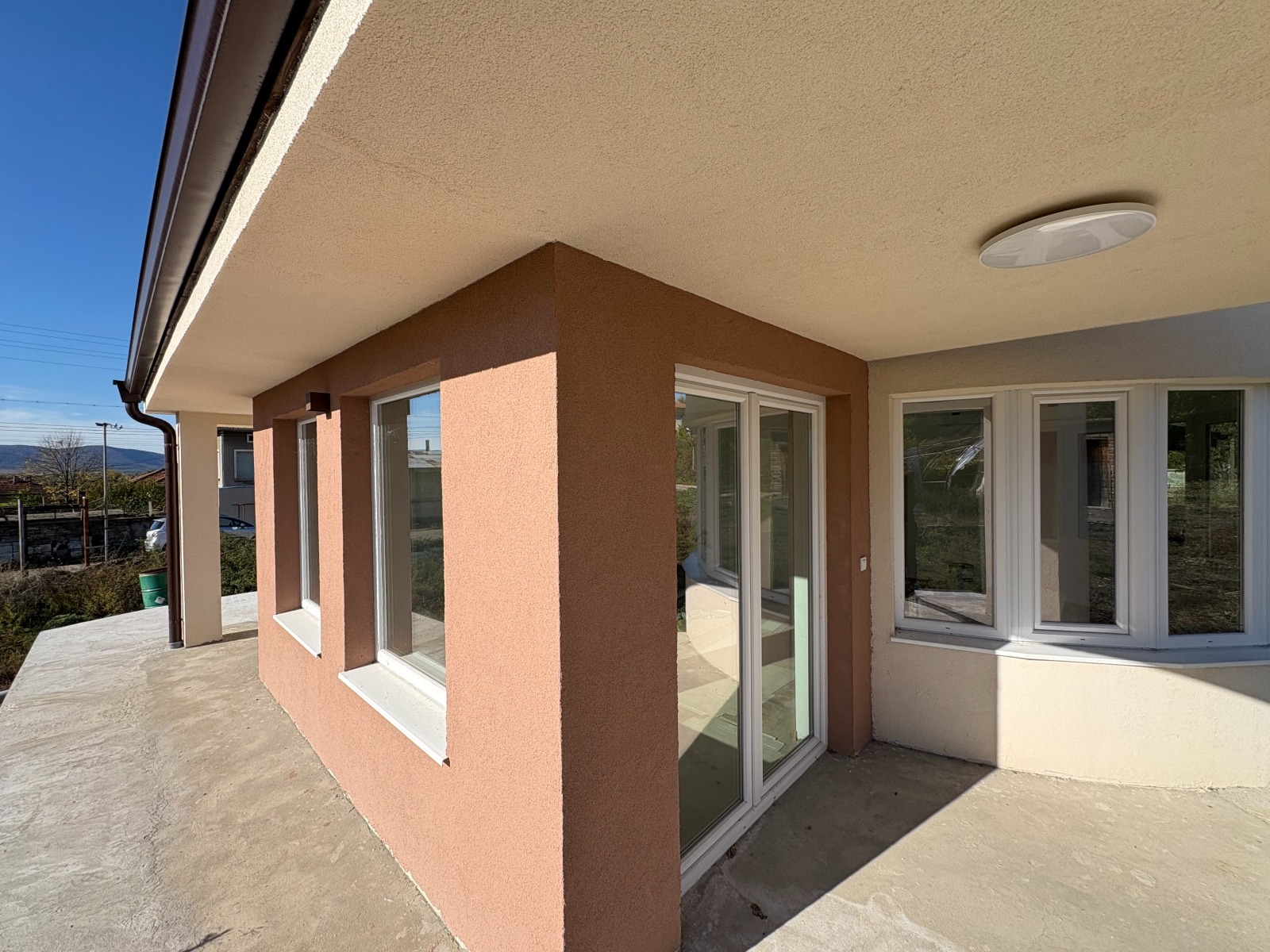 Тухлена къща ново строителство на 10 км. от град Шумен. Имотът е разпределен както следва: коридор, баня и тоалетна в едно помещение, спалня, кухня с трапезария. Второ ниво: две спални, две бани. Къщата е е завършена с висок клас материали разположен на две улици. Ролетна врата на гаража, немска дограма висок клас. Професионално изградена септична яма. Изключително функционален стил с невероятна панорамна гледка. Трите санитарни помещения ще бъдат завършени! Къщата се намира в централната част на селото и е разположена на две улици. Огледи по всяко време.