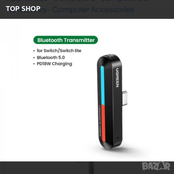 UGREEN CM399 Switch Bluetooth адаптер 5.0 предавател, свързан към външен високоговорител за безжични → Обява 48704374