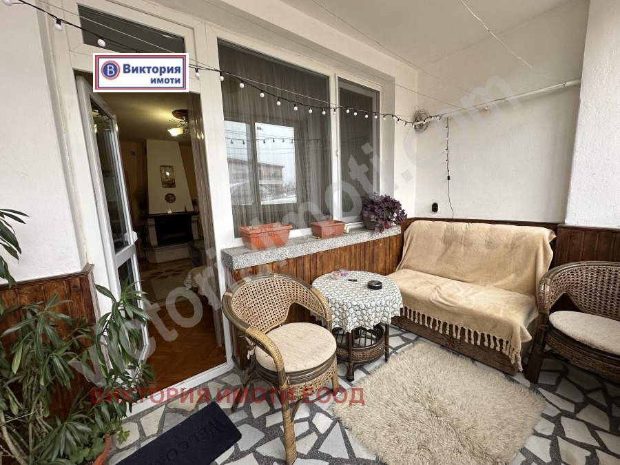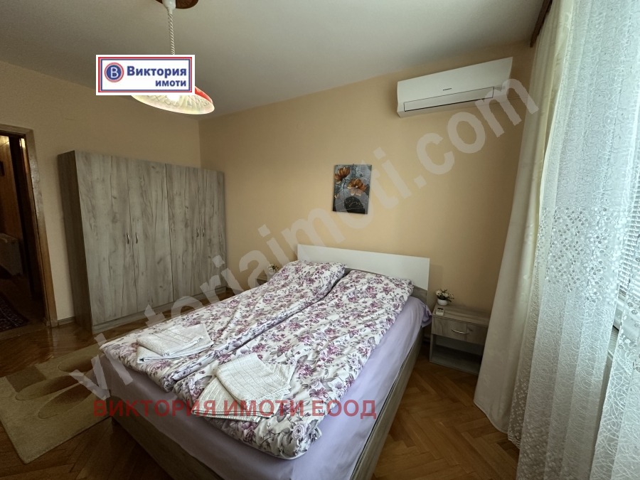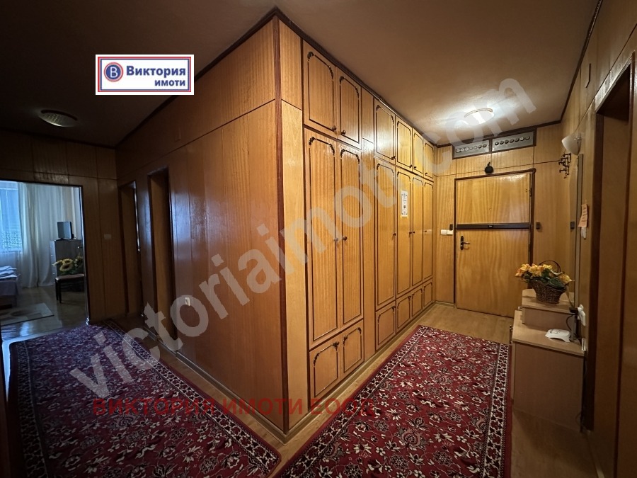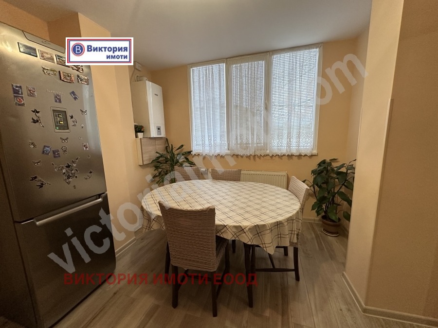 Екипът на Виктория имоти предлага на Вашето внимание просторен имот за покупка в квартал Зона Б, в непосредствена близост до магазини, автобусни спирки, пиаца на таксита, детска градина и детски площадки. Жилището се намира в тухлена сграда, разположено на междинен етаж. Чистата жилищна площ на апартамента е 141,45 кв.м. разпределени между г-образен коридор, голяма кухня, трапезария, хол, три спални, мокро помещение, баня, тоалетна отделно и три тераси. Обзаведено и оборудвано с всички необходими мебели и електроуреди, който са включени в цената. Направена е инсталация на отопление на газ с котел и радиатори във всяка стая, а за по-голям уют има и функционираща камина. Към имота има прилежащ таван с площ 20,73, който е отдаден под наем и маза с площ 12,87 кв.м. В продажната цена е включен и голям гараж, който е свързан с мазата и може да се използва също за търговско помещение. Апартаментът е много топъл, слънчев и просторен, като има възможност да се обособи и четвърта спалня. Заповядайте да разгледате този прекрасен имот, който може да се превърне във Вашия нов дом!