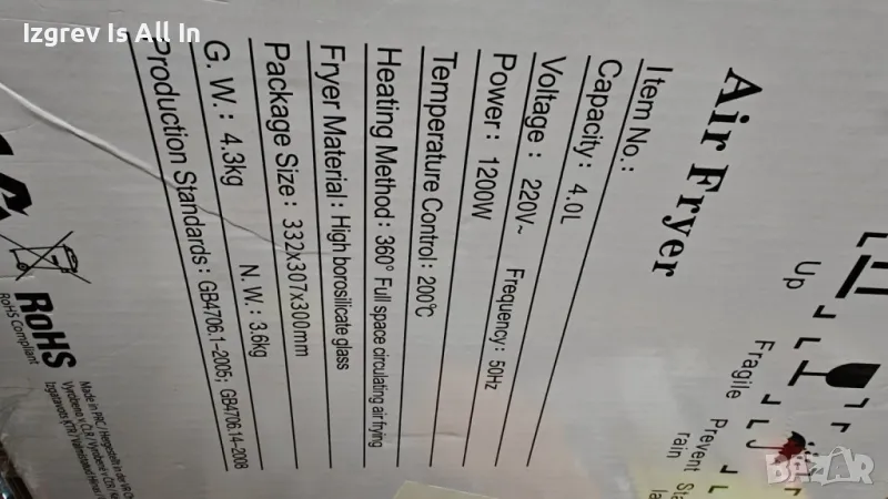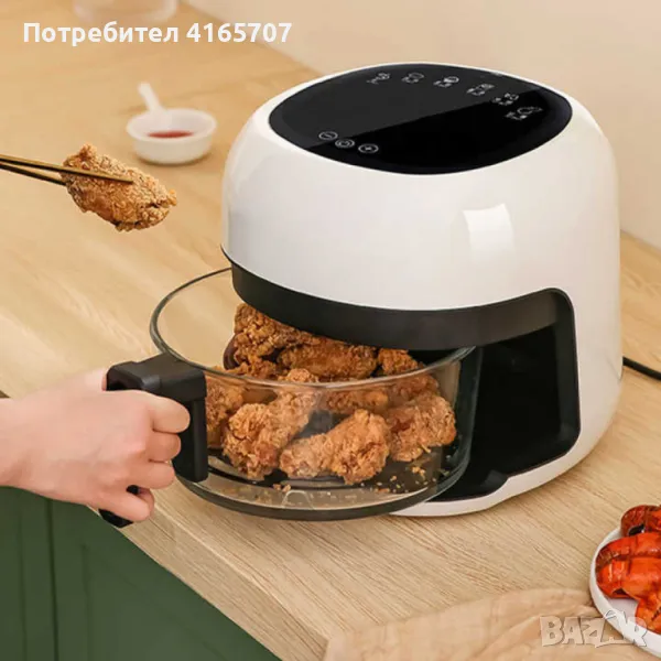 Интелигентен въздушен фритюрник 4 литра с прозрачен визуален прозорец – Здравословно готвене с лекот → Обява 48704962