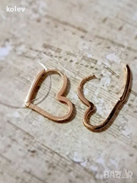 Златни обеци, тип халки, модел СЪРЦЕ с цирконии 2.52 грама 14К