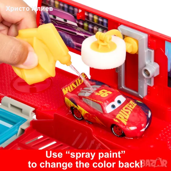 - Тръгнете на път със стил с комплекта за игра Cars Mobile Paint Shop Mack Color Changers на Disney и Pixar с включен Lightning McQueen!