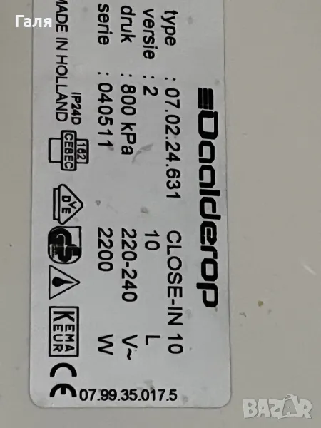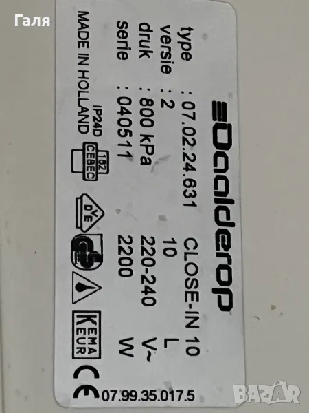 Бойлер Daalderop Close-10 литра → Обява 48706503