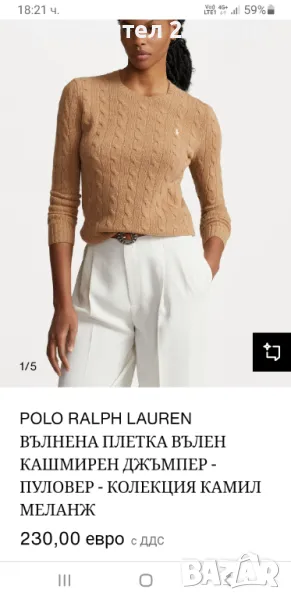POLO Ralph Lauren Cable Wool / Cashmere Knit Womens Size S НОВО! ОРИГИНАЛ! Дамски Пуловер !