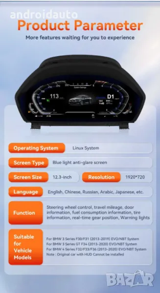 Дигитален километраж BMW F30 F31 F34 F32 F33 F36 12.3" LINUX SYSTEM