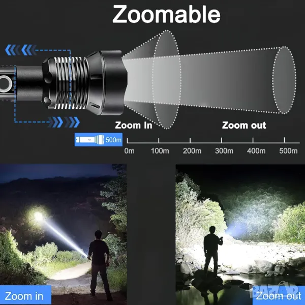 Р90 Мощен метален LED акумулаторен CREE LED прожектор фенер