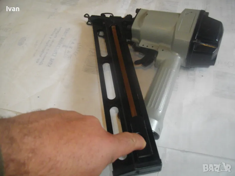 ПНЕВМАТИЧЕН ИНДУСТРИАЛЕН ТАКЕР ЗА ПИРОНИ РАЗМЕР 32-64мм 34 ГРАДУСА КАТО НОВ ГОЛЯМ С БЪРЗА СИСТЕМА
