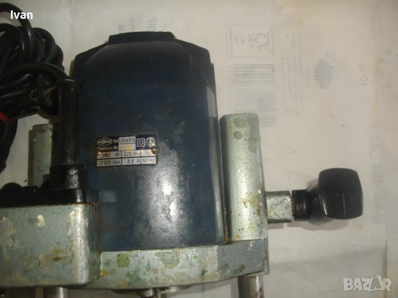 Хипер силна и мощна 1800 ватова немска професионална оберфреза за тежки операции със скорст от 23 00 об/мин. Машината е от старото качество, вършещо истинска работа. Марка и модел на оберфрезата - HAFFNER Type UH 45 S.