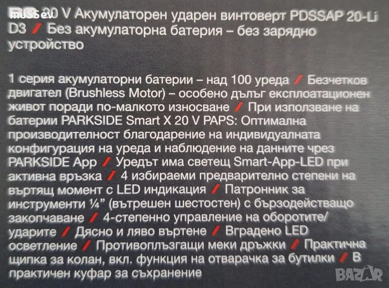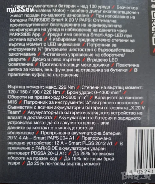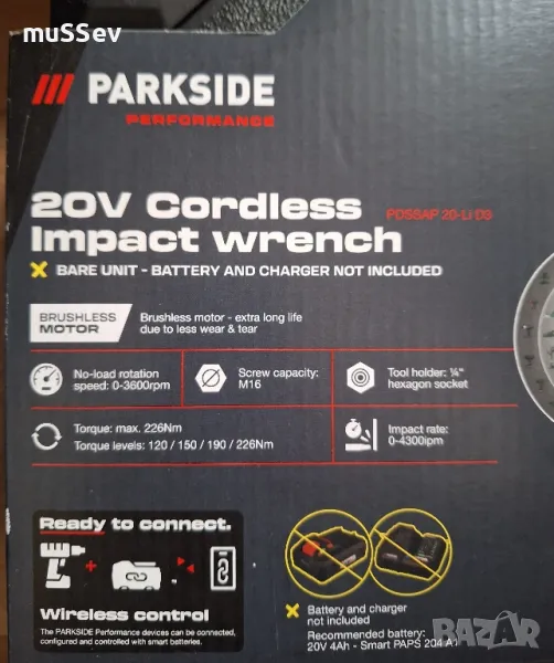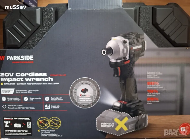 Акумулаторен ударен винтоверт 20В на Parkside Performance