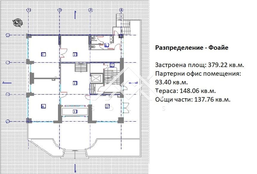 Обща площ: РЗП 3329.02 кв.м., Общи части: 512.44 кв.м.