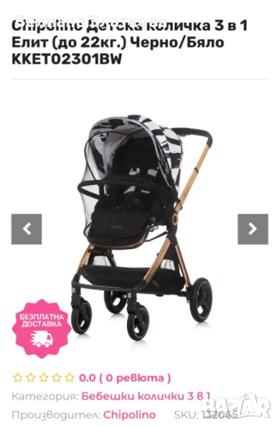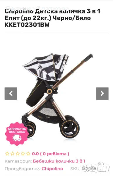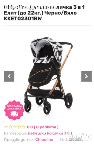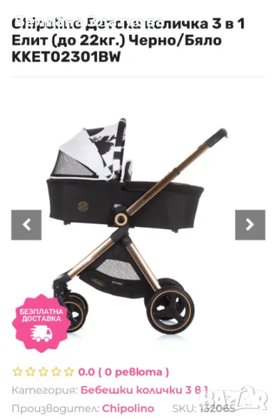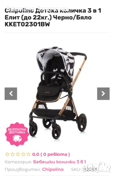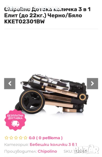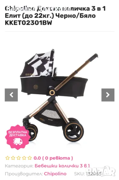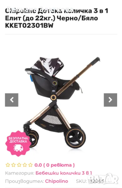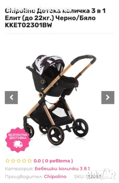 Бебешка количка Chipolino Елит 3 в 1, модел 2024 г - Комбинирана количка. Използване е, но всичко е почти ново. Ползвана в броени пъти. Има леки забележки по рамките(одраскани са).