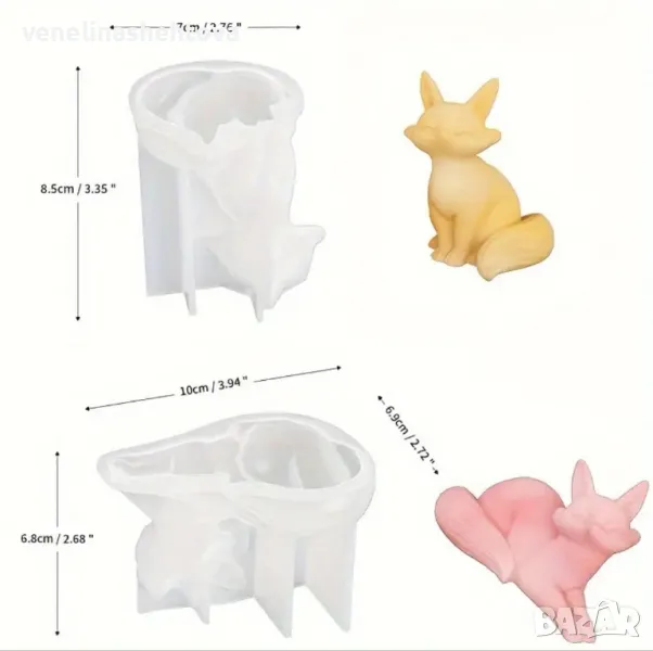 3D Два модела Голяма лисица Силиконов молд форма за свещи гипс сапун → Обява 48711888