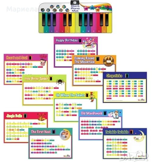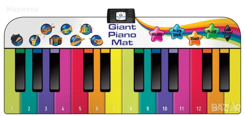 С помощта на гигантските 24 цветни, цифрово кодирани клавиши, детето може да възпроизведе музика за броени секунди. Има и ефекти, пресъздаващи 8 различни звука от музикални инструменти (пиано, арфа, цигулка и други).