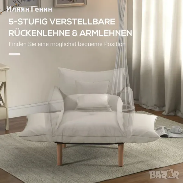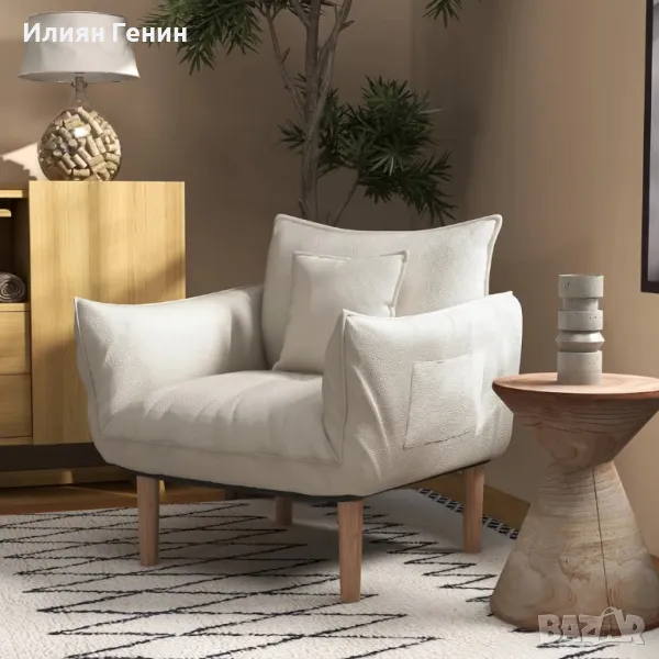 HOMCOM Кресло 2 в 1, шезлонг с възглавница подов стол с тапицирана възглавница стол за всекидневна спалня кремаво бяло - 340.00лв.