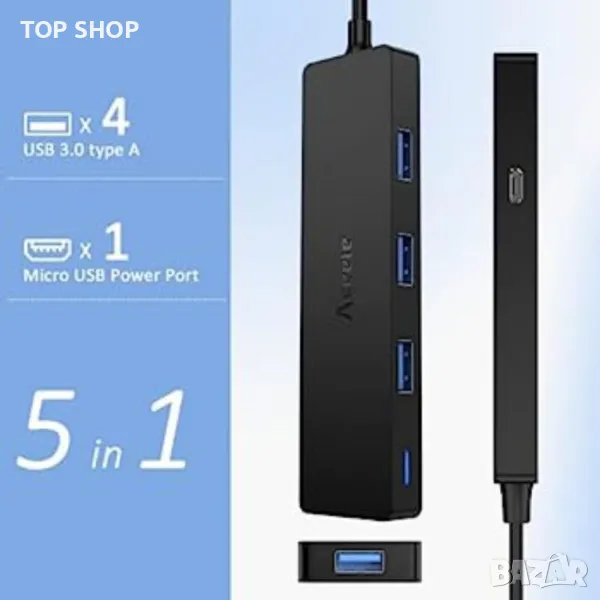 60 см кабел + 4 USB 3.0 порта: можете да удължите издръжливия USB кабел на концентратора за лесно използване на настолен компютър. Подарете си повече места и възможности за използване. Aceele USB C хъб преобразува USB-C порта на лаптопа в 4 USB 3.0 порта, които могат да бъдат свързани към клавиатура, мишка, USB памет, телефон и др.