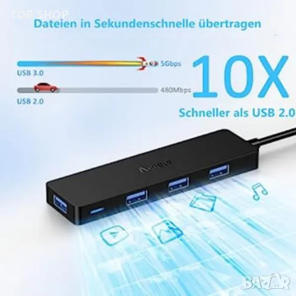 【Висока издръжливост】: USB 3.0 портът има вградена настройка за защита от ток, която може да удължи живота на хъба. Plug and play без драйвер.