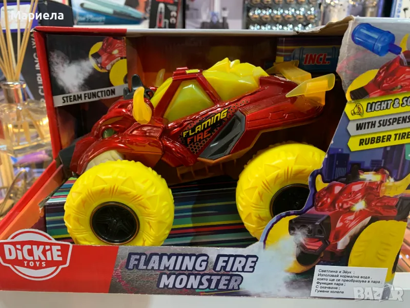 Чудовищният камион "Flaming Fire" наистина разгорещява момчетата и момичетата: с чудовищен външен вид, дизайн на пламтящ пламък и истински ефект на водна пара.