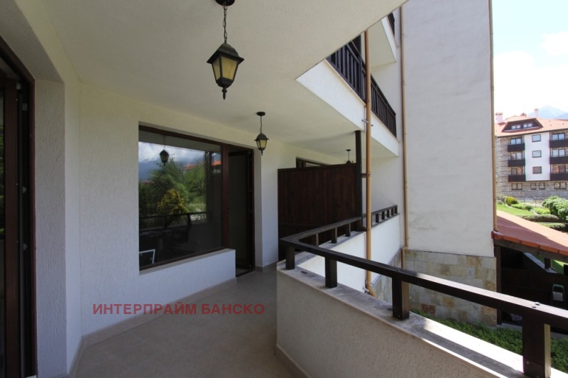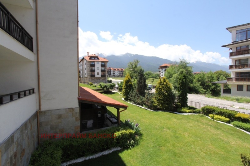 Двустаен апартамент, за продажба в к-с „Паркландс” в гр.Банско. Имотът се състои от антре, слънчева и просторна дневна с кухня с вградена фурна с котлони, абсорбатор , хладилник ,трапезна маса със столове, диван, фотьойли, холна маса, телевизор . Спалнята е обзаведена с двойно легло с две нощни шкафчета и гардероб. От двете стаи се излиза на голям балкон с южно изложение с прекрасна гледка към Пирин и градина.