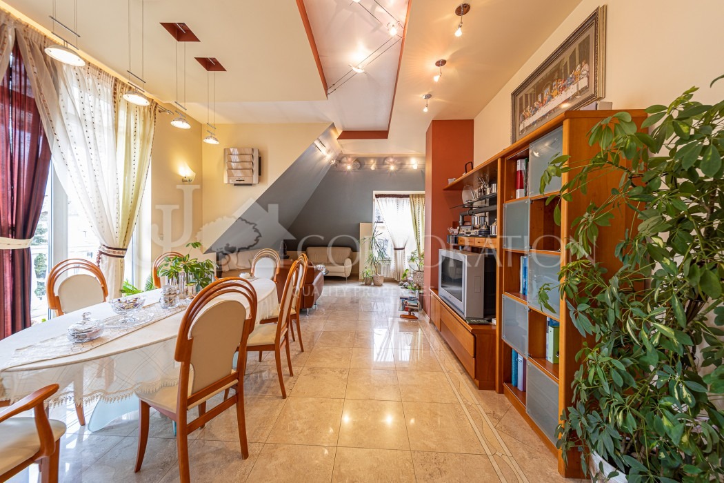 ВЕЛИКОЛЕПЕН! НАПЪЛНО ОБЗАВЕДЕН! ПАРКОМЯСТО! Предлагаме на Вашето внимание елегантен тристаен апартамент, находящ се на последния етаж в сграда, част от малък затворен комплекс със собствен вътрешен двор, в кв. Павлово. Имотът е в перфектно състояние (скоро е правен освежителен ремонт) и се предлага напълно обзаведен. Разпределение: просторно входно антре, голяма дневна обособена на зони холна част, трапезария и кухня, хубава тераса, две спални, баня с тоалетна с хидромасажна вана и душ кабина, тоалетна за гости, втора по-малка тераса и коридор с големи вградени гардероби. Отоплението е подово с ел. котле, а има и климатици. Изключително стилен и светъл апартамент, характеризиращ се с големите си тераси и хубава панорама от всички помещения. Има възможност за наемане на паркомясто на допълнителна цена от 100 евро.Работим с колеги по всички наши оферти! Удобно е да се обаждате по всяко време! Водещ брокер: Ясен Джанев 0888 23 50 63. Оферта номер: 0307