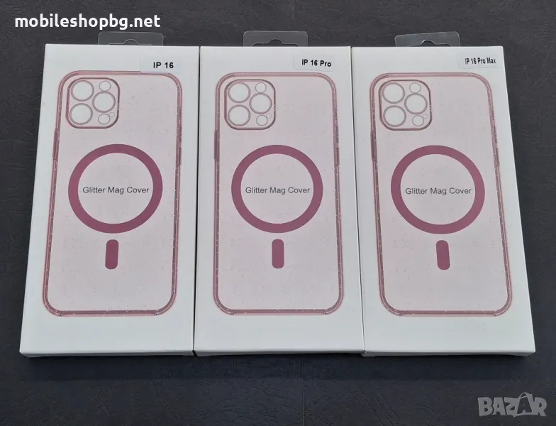 Phone 16,16 Pro,16 Pro Max кейс с брокат MagSafe розов → Обява 48712891