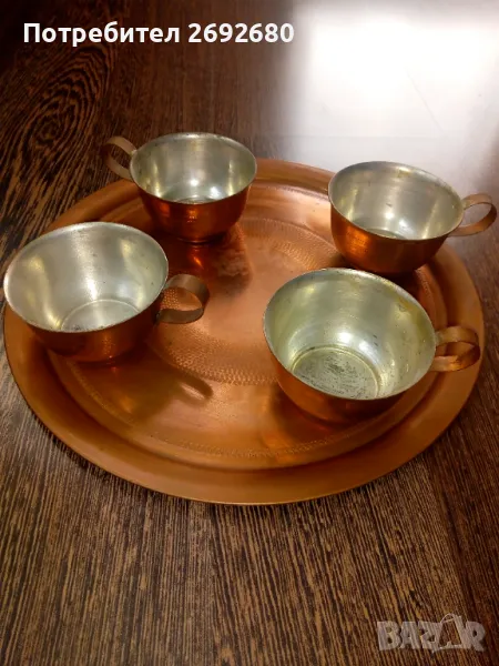 Меден поднос с 4 медни калайдисани чашки → Обява 48713306