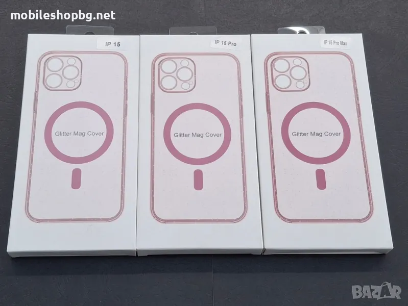 Phone 15,15 Pro,15 Pro Max кейс с брокат MagSafe розов → Обява 48713702