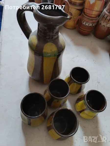 много стари керамични чаши с кана. добре запазени. Българска керамика. цената е за всички