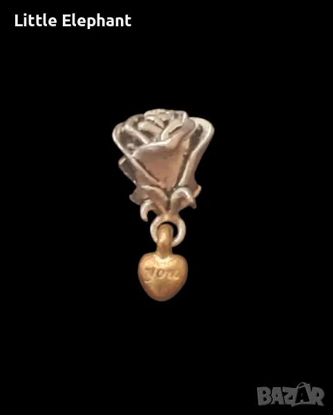 Сребърен елемент Дисни серия"Красавицата и Звяра",роза/нов → Обява 48714073