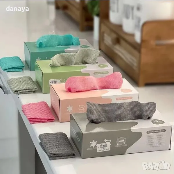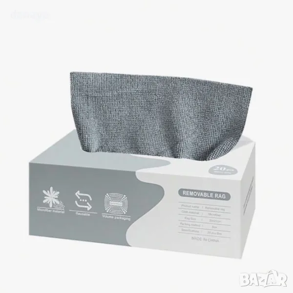 Практични микрофибърни кърпи в картонена кутия тип диспенсър.