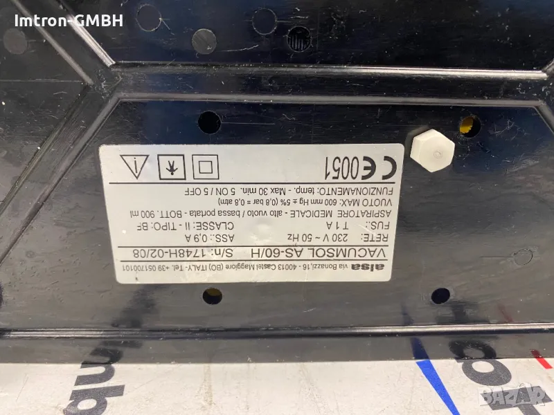 Аспиратор Vacumsol, модел AS-60 Максимален вакуум 650 mm/Hg (0,85 bar, 0,85 atm) Дебит 17 l/min.