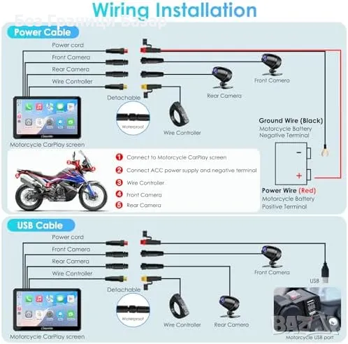 Нов Мотоциклетен CarPlay с Bluetooth, Двойна HD Камера и Контролер