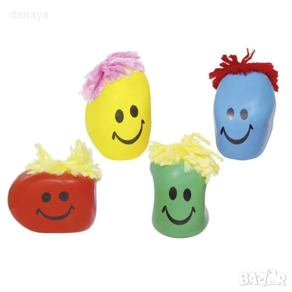 Балон за мачкане с усмихнати лица. Забавна, креативна и супер мека играчка за стискане с форма на балон топче с усмухнато лице и косичка на главата. Когато я стиснеш, тя придобива всякакви форми 🙂 Идеален за забавен и незабравим подарък за малки и големи.