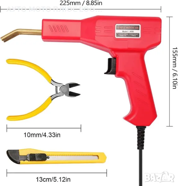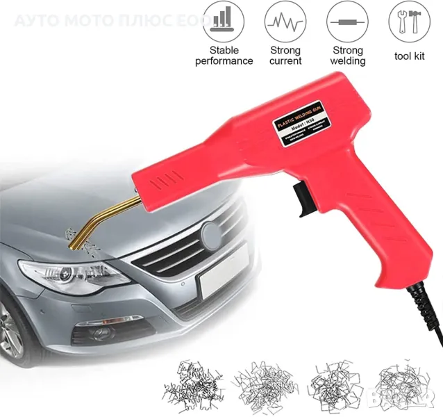 Този инструмент е удобно и лесно за използване устройство с форма на пистолет за горещо "заваряване" и спояване на пластмаса с телчета.