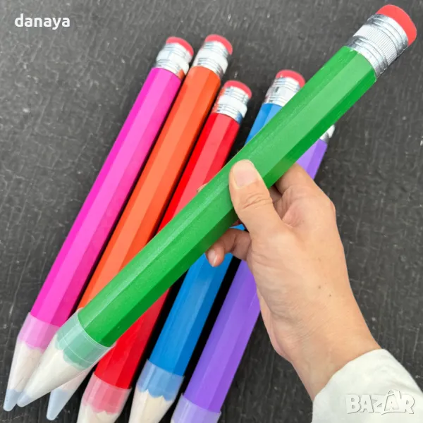 Гигантски дървен молив с гума и капачка!