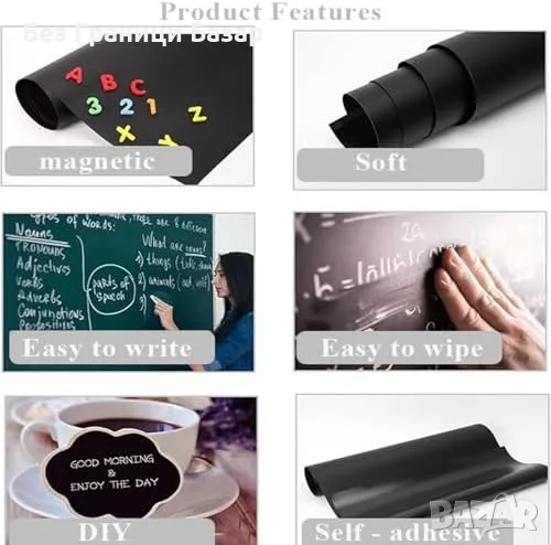 Самозалепващ дизайн: Лесно се поставя на гладки и чисти повърхности. Лек и удобен, идеален заместител на традиционните черни дъски.