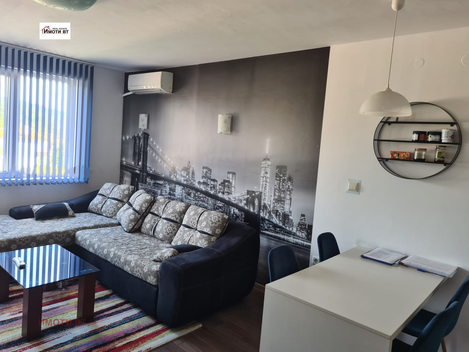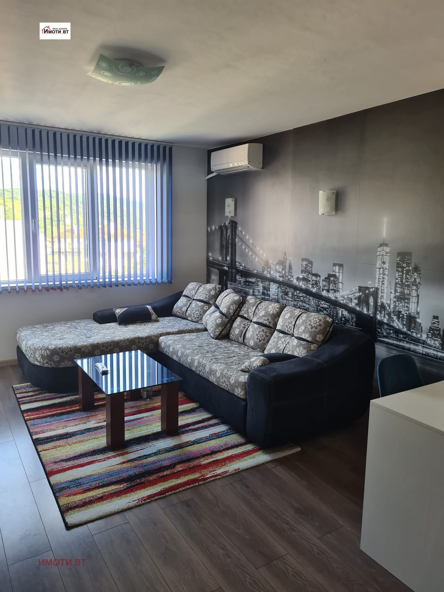 Имоти ВТ ви предлага двустаен апартамент под наем в сграда ново строителство. Апартаментът е светъл, уютен и топъл. В перфектно състояние, както се вижда от снимките. В непосредствена близост до центъра, детски градини, училища, парк Марно поле, автогарата и с гледка към Царевец. Предлага се напълно обзаведен. Отоплява се с климатик. В района се паркира свободно. Огледи стават само с предварителна уговорка. Дейвид Иванов - 0884586565