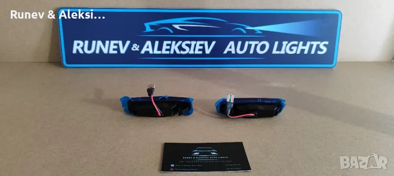 Runev & Aleksiev Auto Lights предлага:LED мигачи за:БМВ 5 серия Е39 1995 - 2003BMW 5 series E39 1995 - 2003Plug and playОпушениНе дават грешкаВодоустойчивиВисока производителност, ниска консумация, надеждни, дълъг живот и ниска топлинаЦената е за комплект.Големи отстъпки при покупка на количества!Възможност за монтаж в нашият сервиз.**Монтажите се заплащат допълнително. Записване с предварителна уговорка.Dynamic - LED - бягащи - мигачи - turn signals - BMW - БМВ