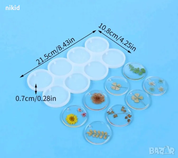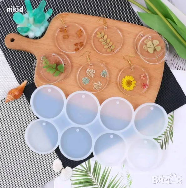 5 см 8 кръг кръга кръгчета с дупка силиконов молд форма фондан шоколад смола обеци бижу висулка → Обява 48716569