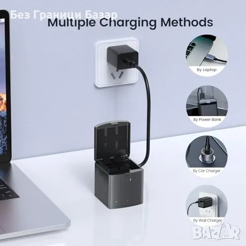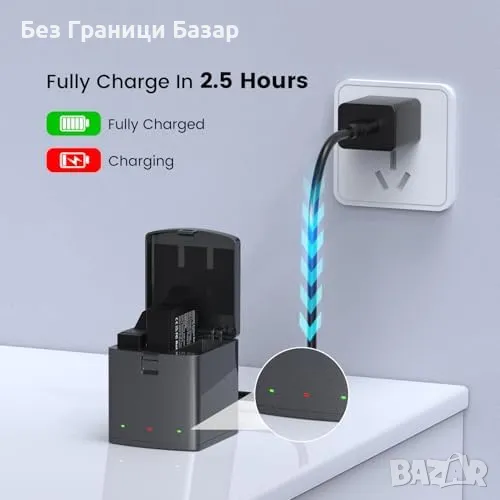 Мобилност: Компактен кейс за зареждане и съхранение на 3 батерии едновременно, предпазва от прах и улеснява пренасянето.