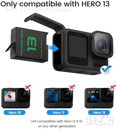 Съвместимост: Батерии и зарядно устройство, напълно съвместими с Gopro Hero 13.