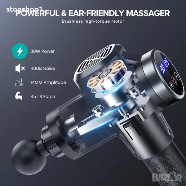 - 💪ПОВЕЧЕ ИЗБОР - 8 масажни глави и 30 нива на интензивност: Има широка гама от масажни глави, които могат да отговорят на вашите различни нужди за мускулна релаксация. С настройка на 30 скорости можете да изберете скорост на вибрация (1200 - 3500/мин), която отговаря на вашите нужди, за да постигнете най-комфортното състояние.