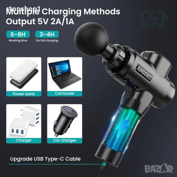 Пистолет за масаж, пистолет за масаж ANSGEC, мощен електрически пистолет за дълбоки тъкани с 30 скор
