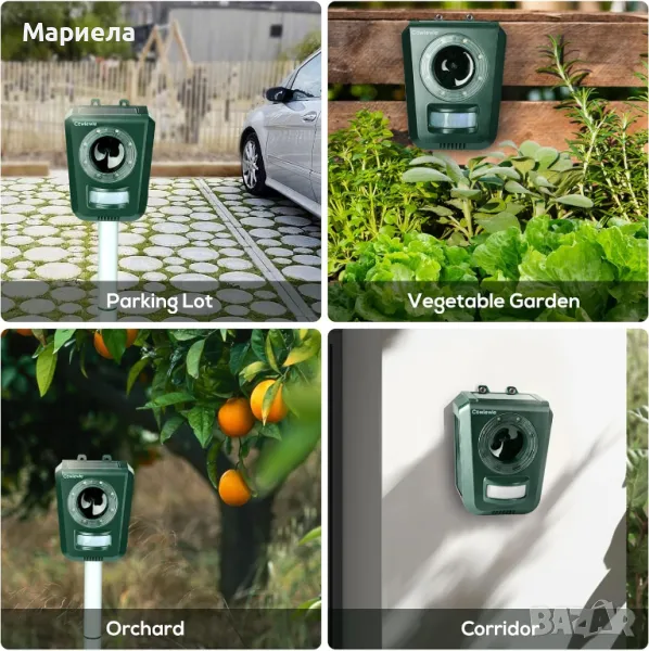 Инсталирайте за секунди и задайте правилния режим. Екологичен, плаши- плаши нежеланите животни.